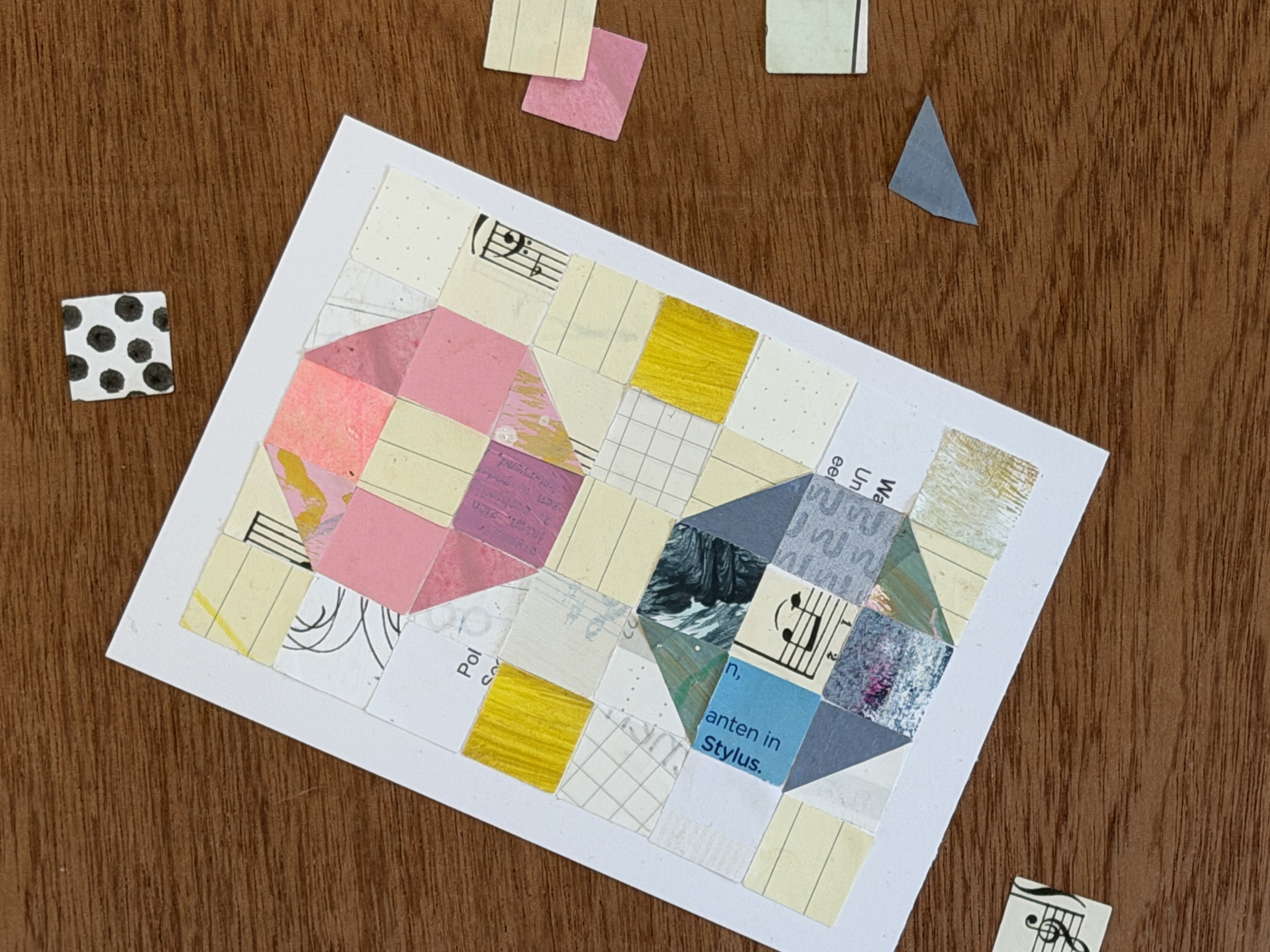 Paper Patchwork is een creatieve collage cursus, waarin je leert hoe je met kleine stukjes papier, kleur en patroon een eigen patchwork-compositie opbouwt.